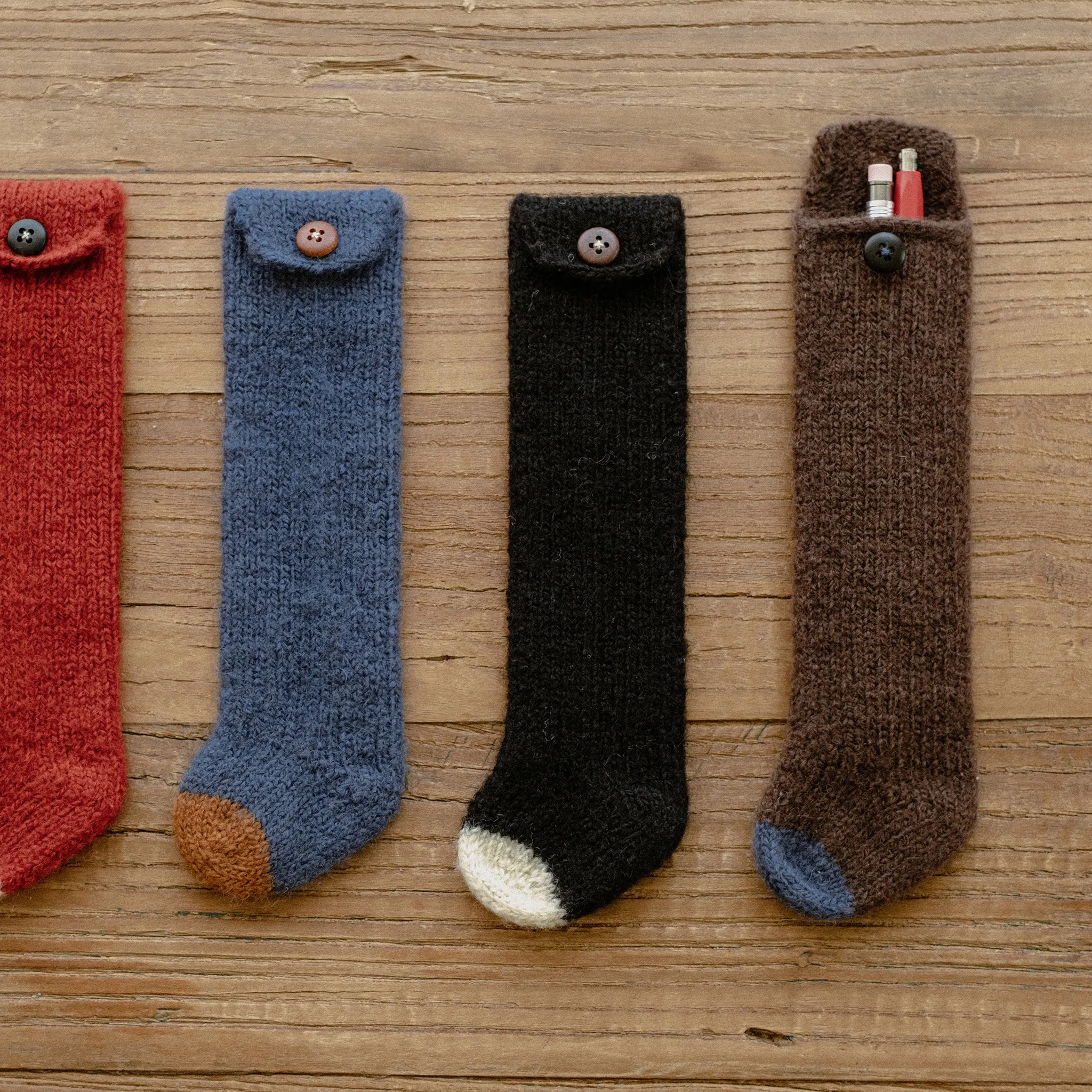 Button sock pencil case(버튼 양말 필통) : 일상을 함께 하는 필기구를 위트있게 수납할 수 있는 양말입니다. 우드 단추로 여닫을 수 있으며 한 짝의 양말에 연필, 펜 등의 필기구를 2~3자루 담을 수 있습니다.