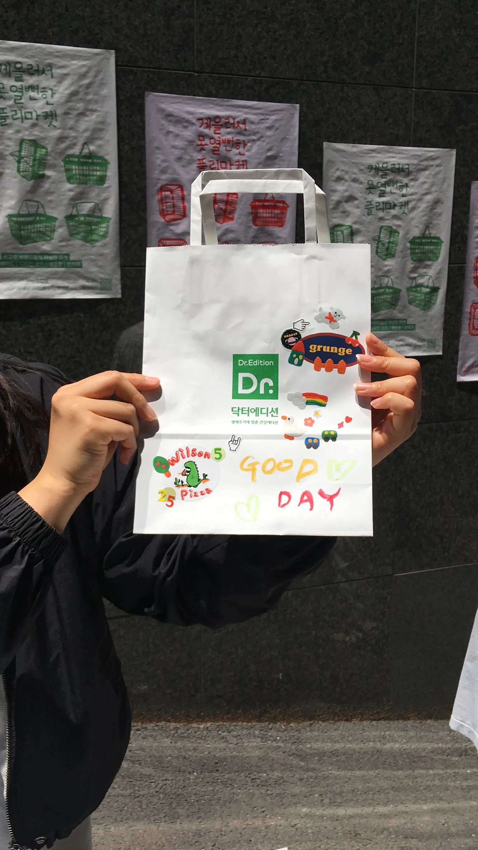 GMBF에서는 그런 아쉬움을 줄여보고 싶었습니다. 그래서 셀러 포크들에게 필수적이지 않은 포장재와 봉투는 준비하지 말아달라고 부탁했어요. 대신 재활용 비닐/종이 봉투를 가져와달라고 요청했습니다. 방문객들에게도 장바구니와 재활용 비닐/종이 봉투를 가져와달라고 안내했어요.