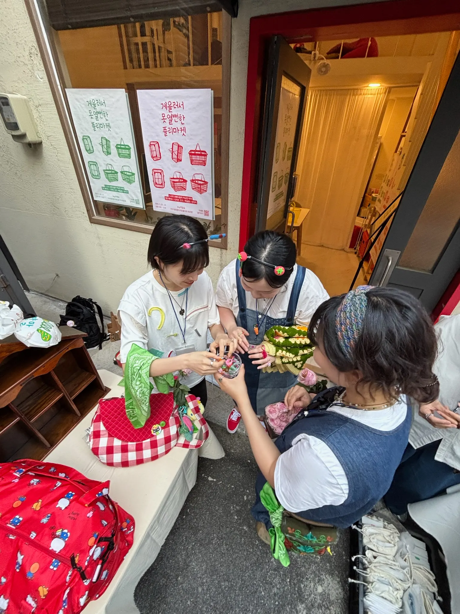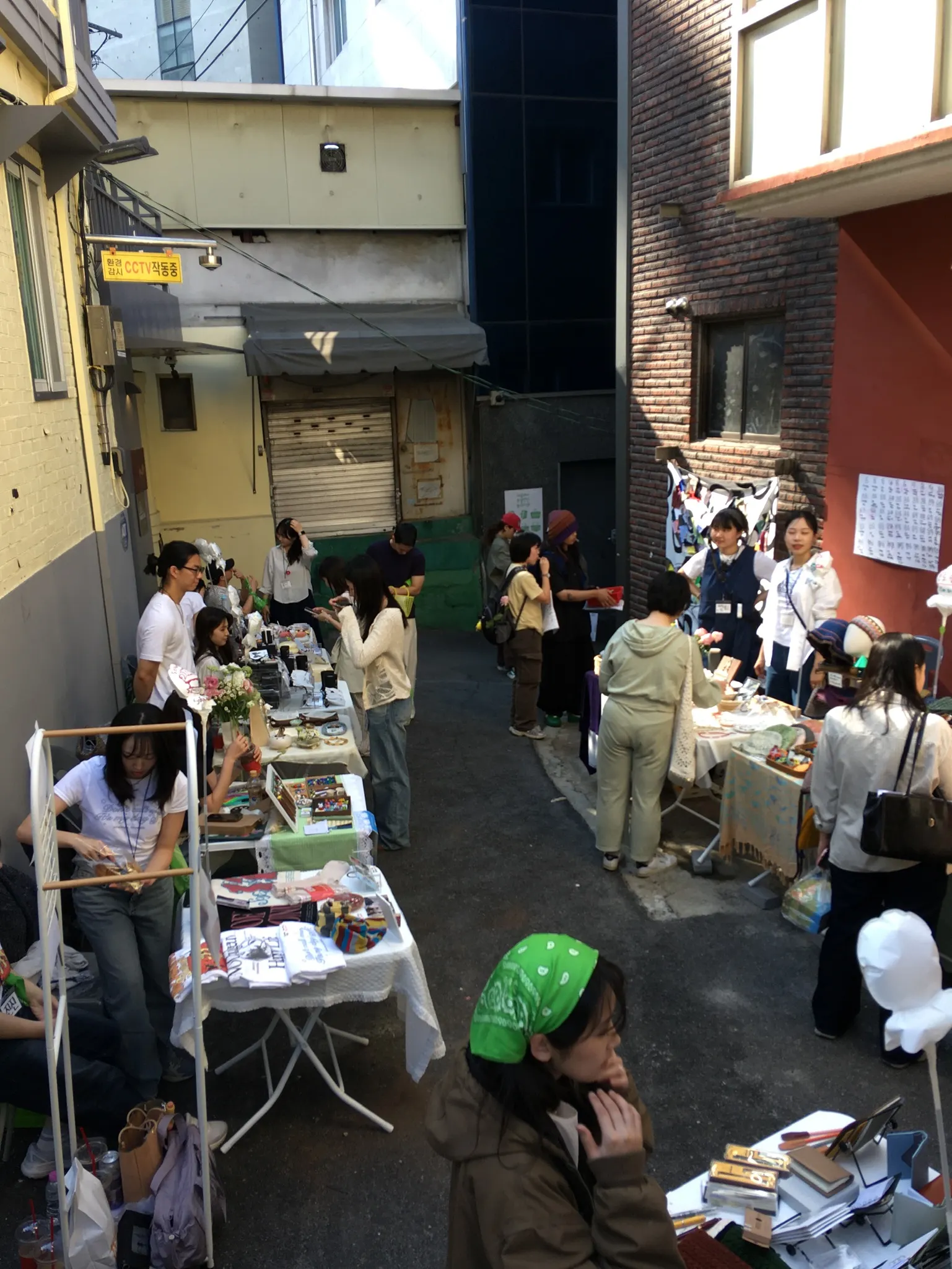 작은 골목은 주말 내내 넘치는 방문객들로 북적였고, 함께한 창작자들과 찾아온 손님들의 표정에서는 어렵지 않게 행복함을 읽어낼 수 있었습니다. 물건을 사고파는 것에서 그치지 않고 크리에이터로부터 무언가를 배우기도, 다함께 현수막을 만들기도, 환경을 생각하는 건강한 소비에 동참하기도 했어요.
