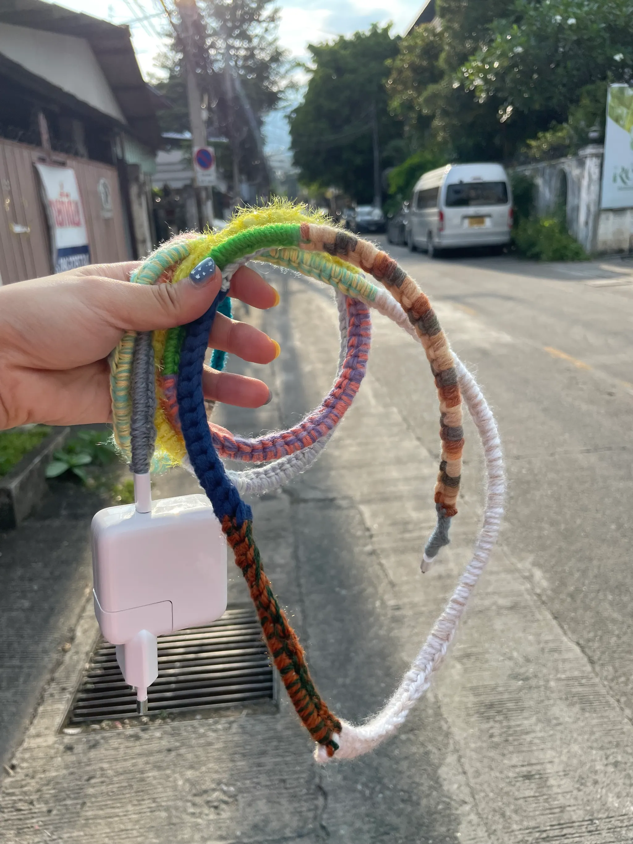 짧은뜨기을 반복해서 이어폰이나 충전선 꾸미기