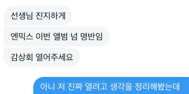 엔믹스 감상회? 아냐, 엔믹스가 너무 좋아서 모이자는 건데 그 좋아하는 마음까지 담겨야 해.