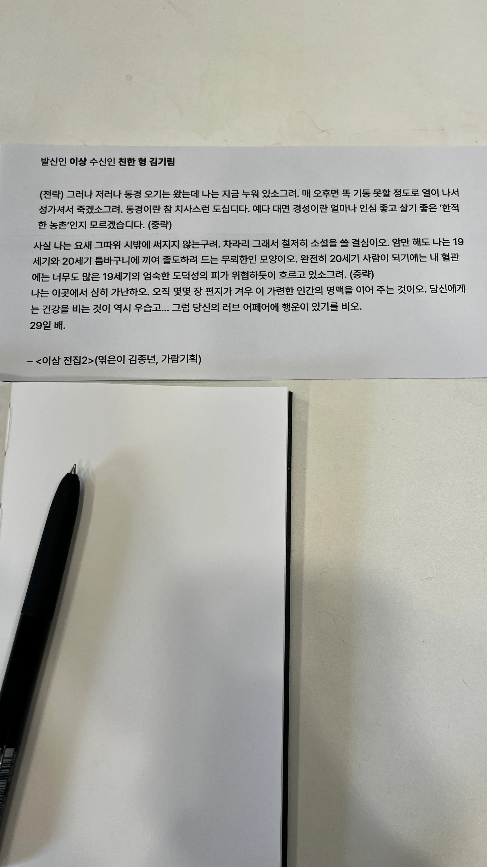 문인들의 편지 필사하기
