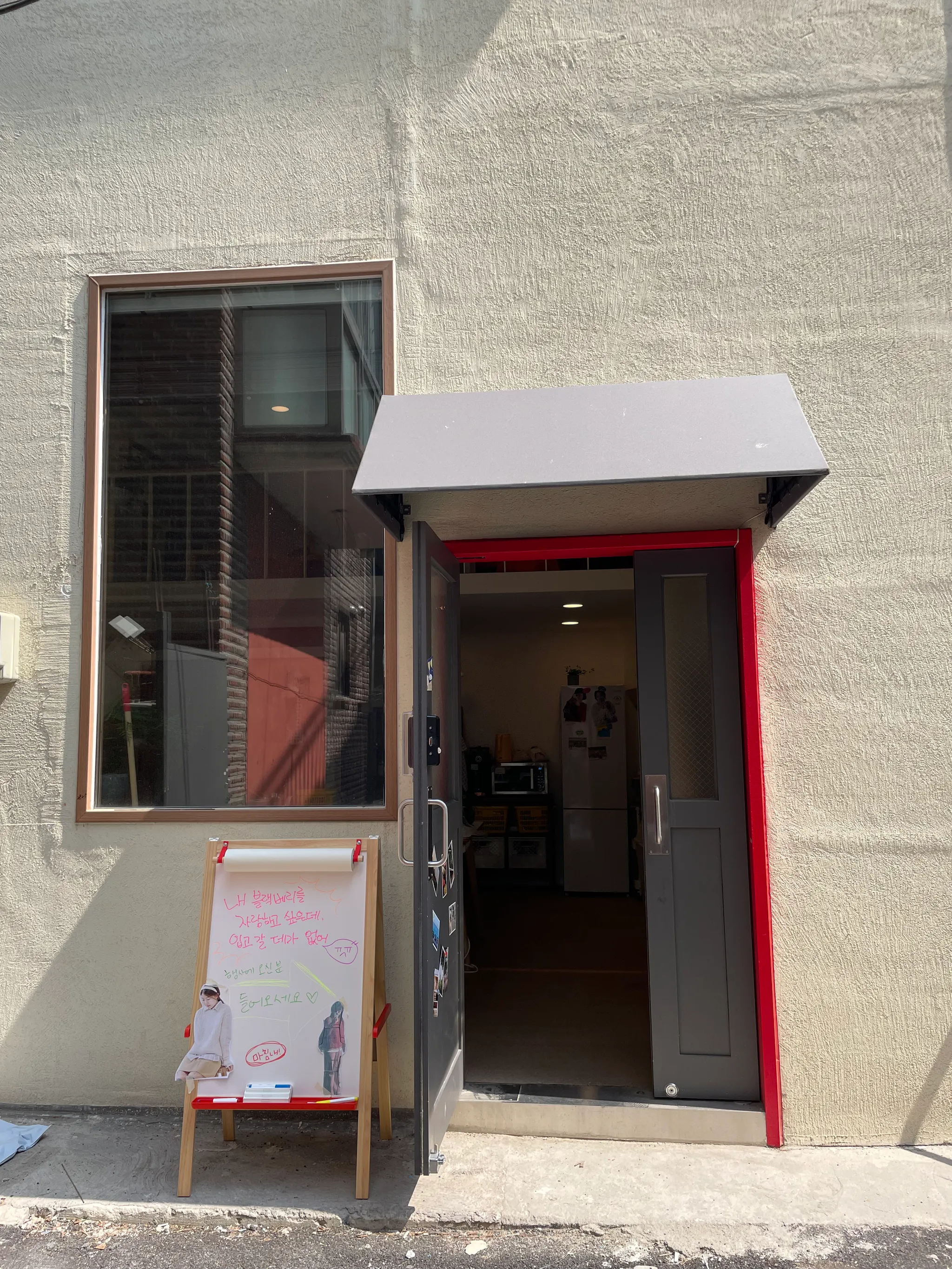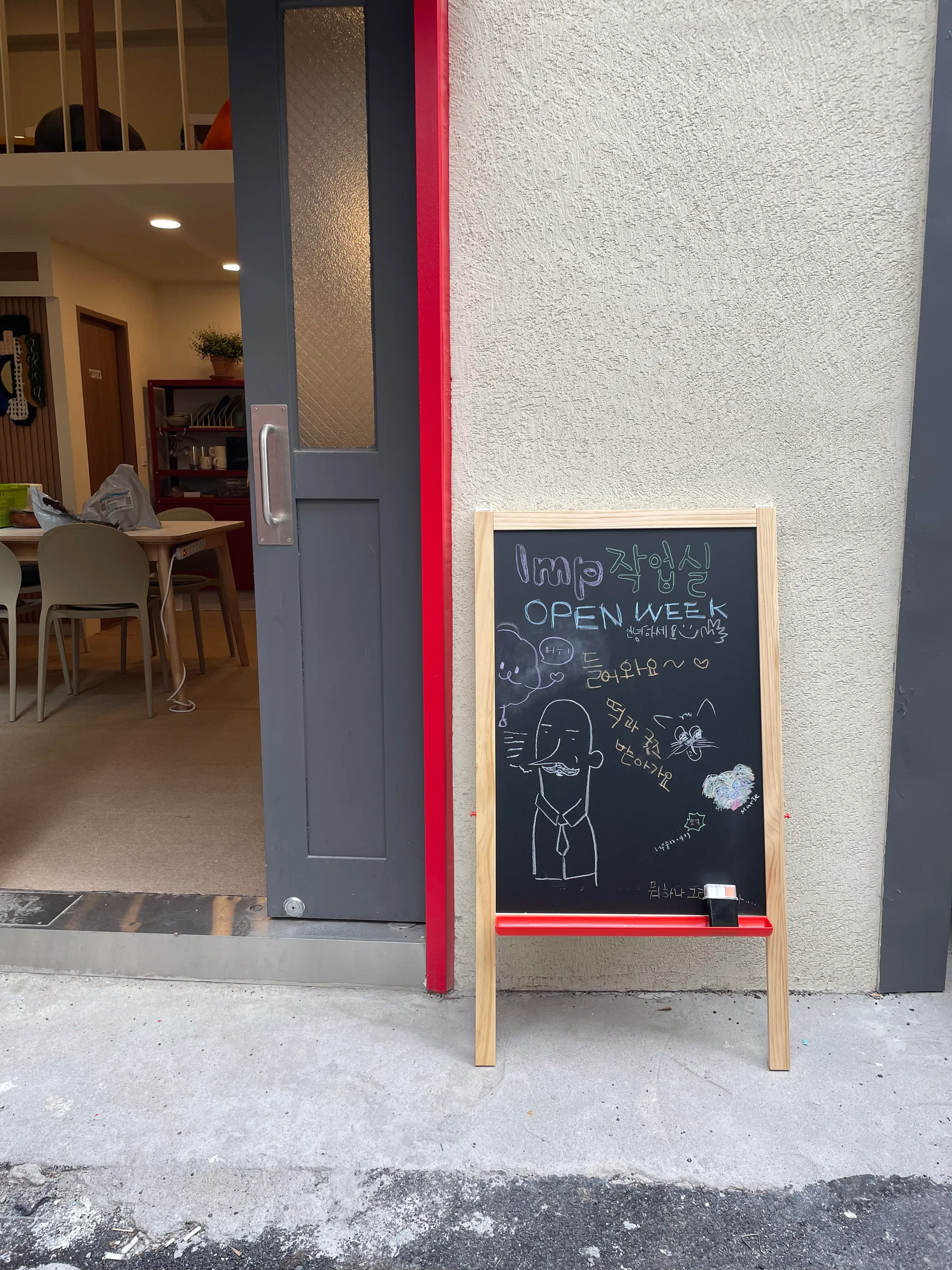 동대문역사문화공원역 10번 or 3번 출구로 나와 DDP와 apm플레이스 상가 사이길로 걸어오다가 감성커피와 카포풋볼스토어 사이 작은 골목으로 올라옵니다. loft라는 간판이 보일 때 왼편을 바라보면 문 테두리가 빨간색으로 칠해진 2층 짜리 건물이 보입니다.